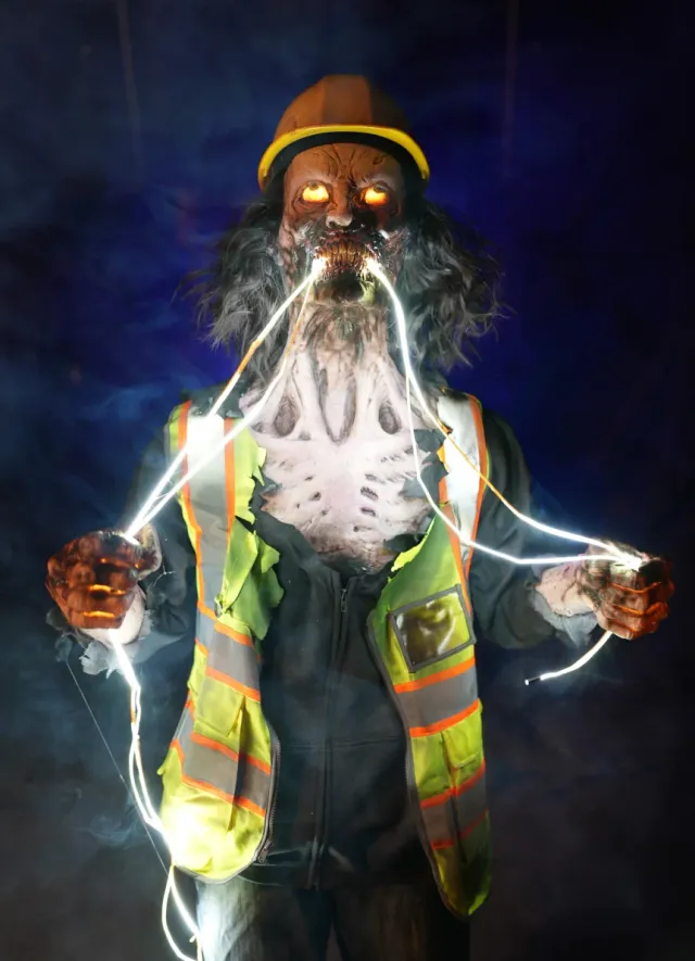 Electric Zombie is a scary and fun prop that will attract attention in your yard, haunted house or Halloween attraction.